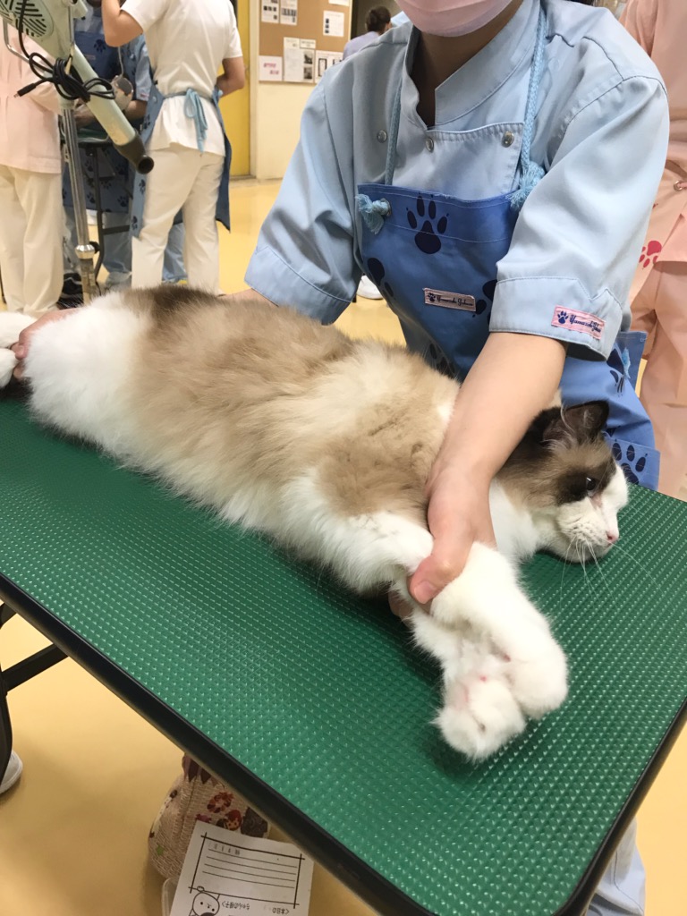 キャット・グルーミング・スペシャリスト(CGS)講習会開催 2019年8月、ヤマザキ動物専門学校とヤマザキ動物看護大学との合同開催で行われました。 本協会のCGSライセンス取得に向けて頑張っている学生さんたちと、それを支えてくれているニャンコたちの様子です!